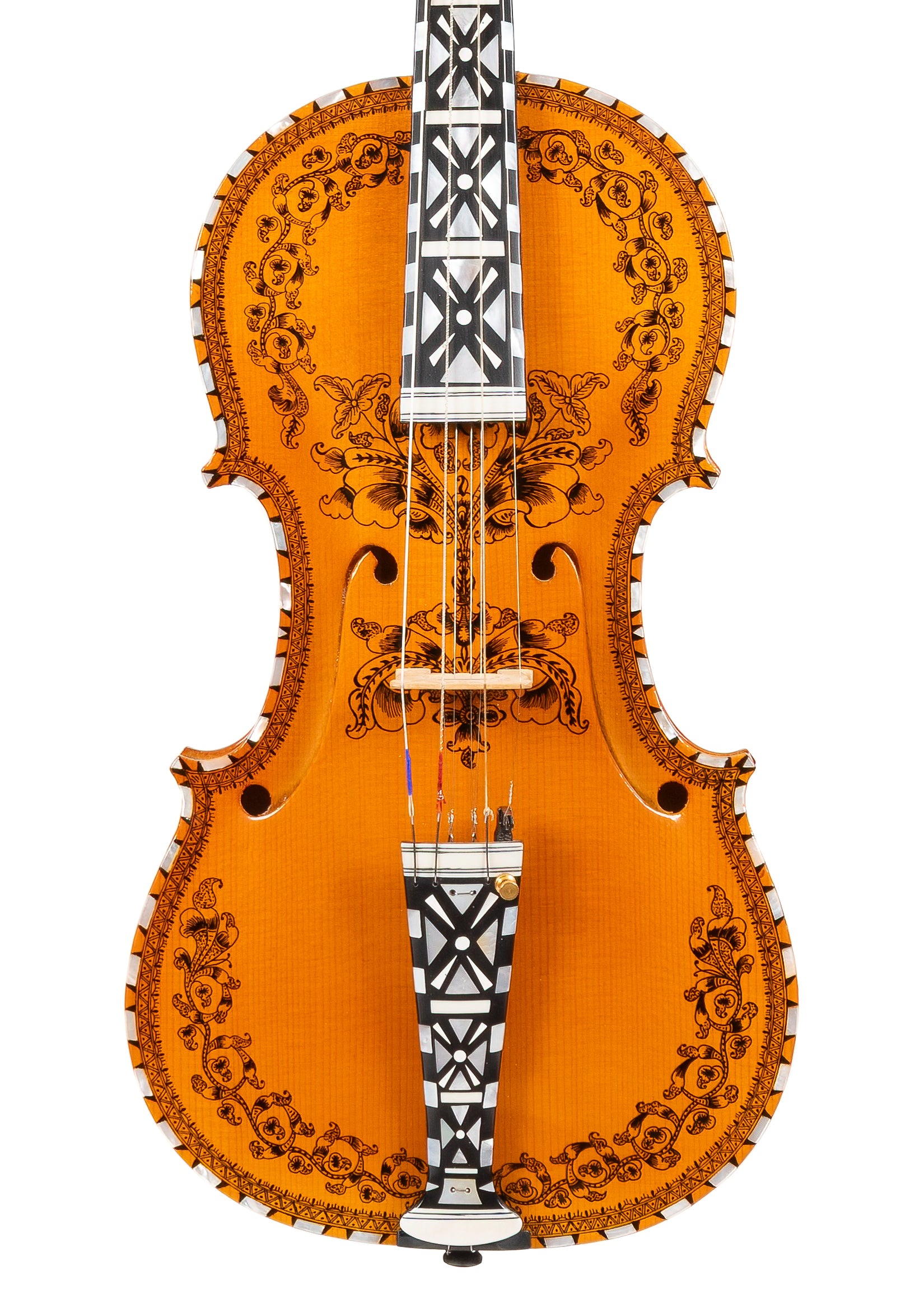 This is a new, fully decorated hardanger fiddle by Steinar Andersen in Siljan, Telemark. What we appreciate most about this fiddle is its easy playability and its beautiful, precise decoration. Steinar recently retired from the world of instrument making after a long, multi-decade career as a fiddle maker. This was his last fully decorated fiddle and holds a lot of significance for him. This is one of the last few chances to try one of his fully decorated fiddles!